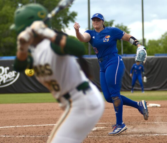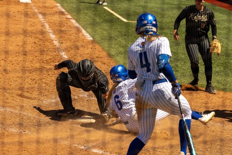 The University of Kansas softball team was one out away from a Big 12 Conference win over UCF Sunday afternoon at Arrocha Ballpark, but for the second straight day, the Knights found a way to come back and thwart the Jayhawks in their final at-bat. Kendall Yarnell hit a pinch-hit, three-run ...