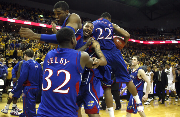 Kansas University’s basketball players congregate at center court and chant, “Big 12 champs,” as they conclude each practice during the marathon conference season. Today, in front of their own fans, the Jayhawks can stake claim to at least a share of an eighth-straight league title — ...