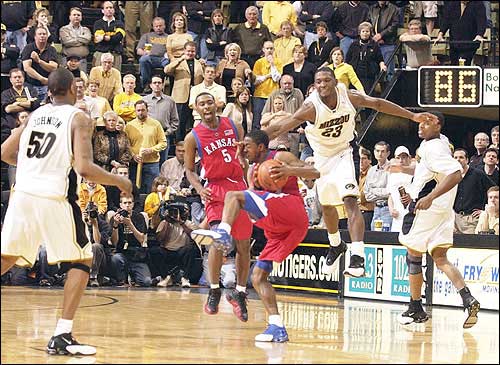 MU’s Arthur Johnson was KU’s main tormentor. Johnson, who had a career-high 37 points off 13-of-17 shooting and 11-of-17 free throwing, scored eight of his team’s nine points as MU cut a 77-67 deficit to 77-76.