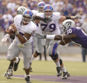 Again, Reesing showed he’s such a clever athlete, blessed with a quick brain, feet and release. His contagious confidence spreads a calmness across the sideline, even when the numbers aren’t adding up. At various points, the scoreboard showed Kansas State leading 7-0, 14-7, 24-21. Reesing’s body language never read like a quarterback whose team had fallen behind, even after his second of three interceptions, when coach Mark Mangino was urging him to “relax, don’t get too wired,” according to Reesing, a natural leader who so firmly believes in himself.