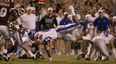 At Lawrence High, McAnderson took handoffs from Tommy Mangino, son of KU coach Mark Mangino. Other coaches didn’t have the luxury of seeing as much of McAnderson, but more than the exposure, it was Mangino’s ability to see Big 12 football players who don’t fit the Big 12 prototype that made the difference. McAnderson was too slow, Sharp and Todd Reesing too small. Mangino’s eye for talent plays a huge part in KU’s 8-0 start.