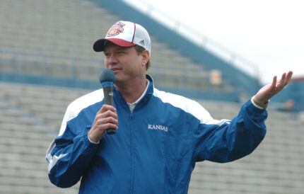 Bill Self, the picture of stress, watching the slow-motion flight of Jason Richards’ three-point buzzer attempt from his knees and then falling forward when the shot died wide left, looking more relieved than happy.