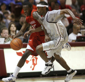 “You know when you play Kansas they will bring guys strong and with great athleticism,” DeAverio said. “They should be very good this year. They were missing three of their guys tonight – twins that are 6-10 and 6-8 and (Sherron) Collins.”