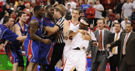 More on that game later. First, a suggestion for those attending today’s contest. Just in case the athletic department makes the mistake of repeating the senseless and relentless bombardment of the senses that occurred in Wednesday night’s victory against Iowa State, bring ear plugs. The dreaded loudspeaker music common in NBA arenas, where evidently fans don’t bring enough passion on their own, reared its ugly voice at the fieldhouse. Not surprisingly, it silenced the crowd. That’s what happens when human beings are assaulted by noise pollution. It exhausts them into a state of inaction. Think of it as a more subtle, gradual version of a frontal lobotomy. The day Major League Baseball cranked up the volume spelled the end to father-and-son chats about the benefits and drawbacks of drawing in the infield. It’s shocking KU has gone down this road, considering the customer-friendly, classy nature of recent improvements to the game experience in both football and basketball.
