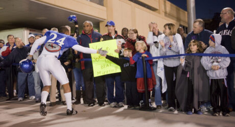 Morris, who hit six of 10 shots, including two of three three-pointers and also went 5 of 8 from the line, received a loud ovation from the student section after his free throw make with 13:18 left and KU up, 53-33.