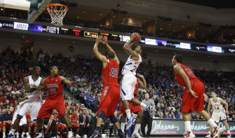 One week after an embarrassing loss in the season opener, Kansas bounced back with an impressive effort to knock off No. 15 Georgia Tech. James Sims ran for 101 yards and a touchdown in his college debut and junior wideout Daymond Patterson caught seven balls for 85 yards and a TD, including a highlight-reel, 32-yard run-and-catch that ended with Patterson diving head-first into the end zone. After the game, players and fans joined together on the Memorial Stadium surface to celebrate Gill’s first victory with the program and the school’s first home win against a Top-15 team since 1984.