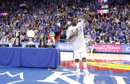 Collins hit four of six shots in the second half, including a three-pointer with 9:40 remaining that pushed KU’s lead to 65-55. He then scored the next four points for the Jayhawks to put K-State behind by 13 with 6:15 to play.