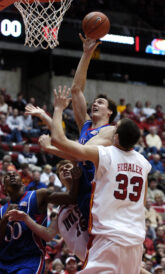 “Our health is pretty good. For this time of year, we’ve been pretty fortunate,” Self said. “We’ve got a couple guys nicked up, but not nicked up to the point they’ll miss practice time or games. We may cut back on a couple guys’ reps. Sherron’s knee is fine after getting it bumped, so there’s no problem there,” he added of point guard Sherron Collins, who banged knees with a Kansas State player in Saturday’s Big 12 title win over the Wildcats.