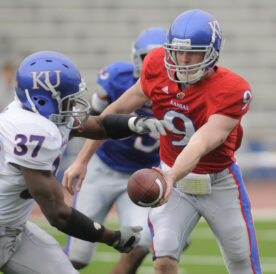 Although the Jayhawks only showed a little of their offensive playbook, it was clear that speed would be a big part of it. Slot receivers Daymond Patterson and D.J. Beshears combined to make nine catches — for 53 yards — and Gill said both have been impressive throughout the spring.