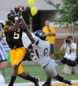 Last year, KU limited Southern Miss standout receiver DeAndre Brown to just four catches — though one of them went for a TD — and 85 yards, with 49 coming on one play. The Jayhawks were thrilled about the way they were able to contain the 6-foot-6, 239-pound star, who’s a threat to score on every play because of his blend of size, speed and skill. So far this season, Brown has found similar numbers during the Eagles’ 1-1 start. In a loss to South Carolina, he finished with four catches for 65 yards and a TD. In a victory against Prairie View, he hauled in five receptions for 100 yards and a TD. USM quarterback Austin Davis has gotten off to a brilliant start, completing 65 percent of his passes for 416 yards. Throw in the fact that part-time quarterback Martevious Young also has logged 132 yards and a touchdown through the air as well, and it’s safe to say that facing the Eagles will be a far cry from what Georgia Tech presented last week. This will be the KU secondary’s first true test of the season.
