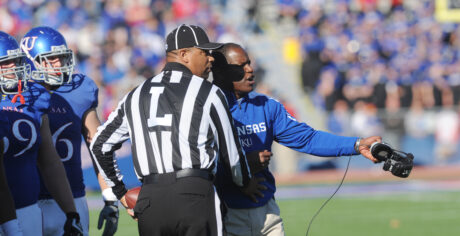 • KU players, coaches perplexed by costly facemask call at end of first half
