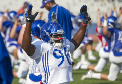 The Jayhawks’ season begins Aug. 24 against Northwestern State, at Fayetteville, Ark.