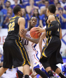 Stats, facts: Tyshawn Taylor played 44 minutes, a season high for any Jayhawk and most since Brandon Rush went 44 against Texas on March 11, 2007. Taylor’s 44 minutes are most in a conference game since Aaron Miles, Wayne Simien, J.R. Giddens and Keith Langford all played 45 or more minutes against Texas Tech on Feb. 14, 2005. … Taylor’s nine points in overtime are most points in an overtime period since Raef LaFrentz scored nine in the first overtime against Missouri on Feb. 4 1997 … It’s KU’s first overtime win against Missouri since a 92-80 decision on Jan 13, 1992 at MU … It’s the first OT game KU has won in Lawrence against MU, and only the second OT game against Missouri in Lawrence (Jan 22, 1920 was the first). … KU is 4-3 all-time in OT versus MU. … KU is 172-95 versus MU all-time. … KU has won 24 games for seven straight seasons. … KU has at least a share of an eighth-straight Big 12 title. Overall, KU has won 12 Big 12 titles and a Div. I-leading 55 conference crowns. … KU has won 21 straight in Allen. … KU has won 13 in a row over MU in Allen. … Kevin Young had a career-high four blocks and career-best eight boards. …
