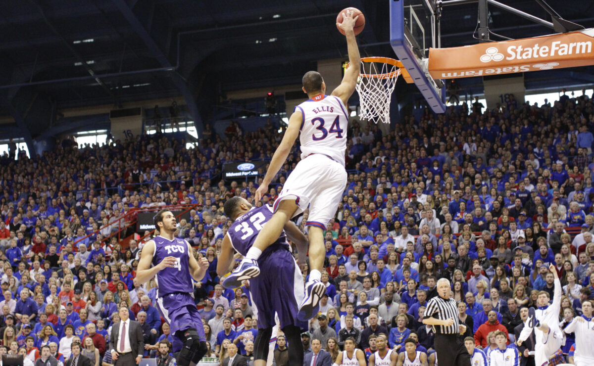 And with one hand, Ellis corralled the pass and hammered it through the net. And, upset of all upsets, the junior forward from Wichita who is so stoic he makes the guards at the Buckingham Palace seem like drama queens by comparison, cracked a smile. The usual Allen Fieldhouse sellout crowd of 16,300 exploded with gratitude for an amazing play and Ellis allowed himself to enjoy it. The sequel came quickly after he made his free throw. Ellis stole the ball near mid-court and this time it was his speedy dribble that he showcased on his way to a dunk that gave his team a game-high 16-point lead in Saturday’s 81-72 victory vs. TCU.