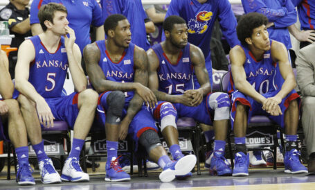 Road test: Three of KU’s next five games are on the road, where Kansas has just one victory this season, a 66-58 win over Northern Illinois on Nov. 27 in the SMU Thanksgiving Classic on a neutral court. After facing No. 4 Baylor today, KU will travel to in-state rival Kansas State next Saturday and head down to Stillwater, Okla., for a showdown with Oklahoma State on Feb. 24 after home games with TCU and Oklahoma. KU’s upcoming road foes combined to defeat the Jayhawks earlier this season by an average score of 64-44.