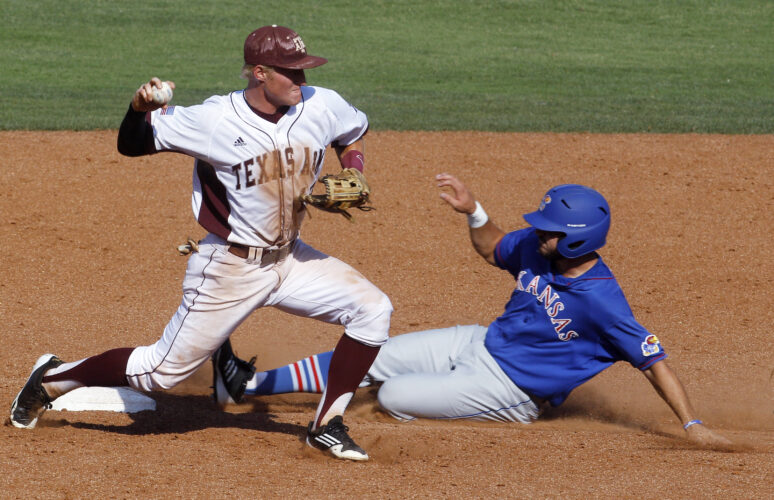Texas A&M second baseman Scott Arthur went 2-for-4 with a career-high three RBIs, while Tyler Naquin collected four hits as the sixth-ranked Aggies downed Kansas, 10-4, in the first round of the Big 12 Baseball Championship on Wednesday at Chickasaw Bricktown Ballpark.Kansas sophomore ...