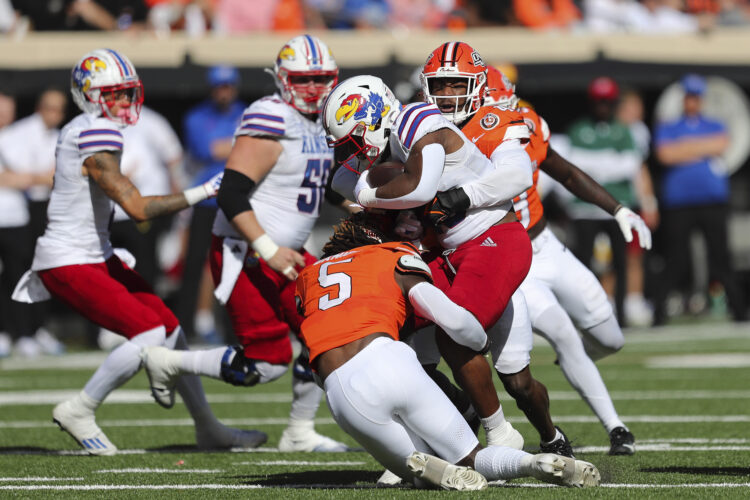 Stillwater, Okla. — Before the unsuccessful fourth-and-5 with seven minutes left that derailed Kansas' fourth quarter, there was a personal foul for a hit after the whistle, assessed to running back Devin Neal, which all but canceled out a key 20-yard catch by Trevor Kardell. "I don’t ...