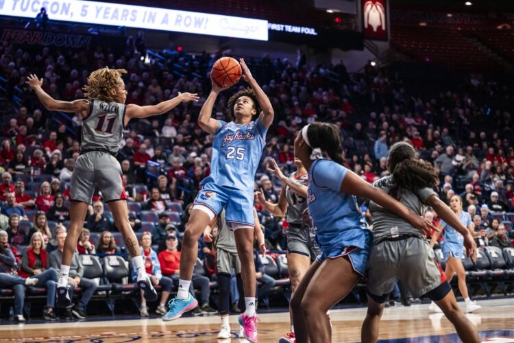 After dropping four straight conference matchups and finding itself near the bottom of the Big 12, the Kansas women’s basketball team salvaged its two game-road trip to Arizona on Tuesday with a 80-69 win over the Arizona Wildcats. Freshman forward Jaliya Davis collected her sixth 20-point ...