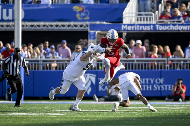 The Kansas football team improved to 4-0 on the year with a 38-27 win over BYU Saturday afternoon at David Booth Kansas Memorial Stadium. But for a brief moment, there was at least some suspense in the fourth quarter of KU’s double-digit victory. On third-and-5 from its own 40-yard line, ...