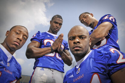 ** 4:00 p.m.** Here’s another audio clip, this one from wide receiver[ Johnathan Wilson][1].**3:32 p.m.**Here’s the audio from[ Mark Mangino][2] during Tuesday’s press conference.**2:44 p.m.**Let’s get you right to some news, notes and quotes from the Kansas football team’s weekly press conference Tuesday.News and Notes¢ **Interesting comments from KU coach Mark Mangino about the kickers.** Mangino said that, even though Grady Fowler had struggled early on with his kicks, he had a “pit-bull mentality” and was out to prove he could win the job. The coach said he liked that Fowler gets the ball off the ground well and gets it high in the air. Meanwhile, Mangino said Alonso Rojas would “be the guy” at kicker if he had started taking kicks from the beginning of camp.It seems this situation just gets more jumbled as we go along. I asked Rojas directly, and he said that he had been told he would be handling kickoffs.My best guess? Fowler goes in for point-afters and shorter field goals, while Rojas goes in for kickoffs and longer kicks. Rojas, it seems, still could earn more kicking responsibilities as the season goes on.¢ **Mangino said he wouldn’t necessarily** stick to the depth chart released Monday, saying the only reason it was released was because of the public demand for it.”It (the depth chart) can change before the ink dries,” he said.¢ **Mangino said he never recruited players **with the idea that he would start them as true freshmen. That’s why he’s been so impressed with Daymond Patterson.”If somebody can do that, it’s a bonus,” Mangino said of the freshman. “He’s proven he can play right now at this level.”Patterson has moved to the top of the depth chart at punt returner and also is a backup at wide receiver.When asked what stood out most about Patterson, Mangino had a quick response.”Speed,” the coach said. “He can flat out run.”¢ **Mangino said that he foresaw freshman fullback Steven Foster **having the same type of impact that Brandon McAnderson had early in his career: as a blocking back and also a special teams player.¢** Safety Justin Thornton has taken a greater leadership role **on this team, and Mangino has noticed.”We expect him to put it all together and have a huge year this year,” Mangino said.¢ **Mangino commented that Dezmon Briscoe** was one guy who “had an incredibly productive training camp.”¢ **As for starting defensive tackle Richard Johnson**, Mangino said he was “getting better, but he still has a lot of work to do.”¢ **Some FIU players Mangino talked about potentially being playmakers** were cornerback Anthony Gaitor, safety Jeremiah Weatherspoon and defensive end Artis Warthen.¢ **Mangino said that Jake Sharp** received the starting nod at running back based on maturity, dependability and understanding of the offense. The coach still made sure to point out that both Sharp and Jocques Crawford will get their share of carries.Quotes**Mangino on freshman cornerback Corrigan Powell:** “For a freshman, he has a lot of talent. … He’s going to be a really good player for us.”**Mangino on playing the first game:** “Opening games are always tricky because you have to have all the right people in the right places. … The first one, to me, is always the one that makes me the most nervous. I’m not a guy that sits around and wrings his hands before games. (The first game) always makes you a little antsy, but I’ll still have fun before the game.”**One quick basketball note:** C.J. Henry, brother of Kansas basketball recruit Xavier Henry, on Tuesday [committed to play basketball at Memphis][3].C.J. Henry, who orally committed to KU his senior year of high school only to play professional baseball for the New York Yankees organization, told the Daily Oklahoman he will play for the Tigers’ basketball team this season. [1]: http://www2.kusports.com/audioclips/4083/ [2]: http://www2.kusports.com/audioclips/4082/ [3]: http://newsok.com/c.j.-henry-to-play-basketball-for-memphis/article/3288810