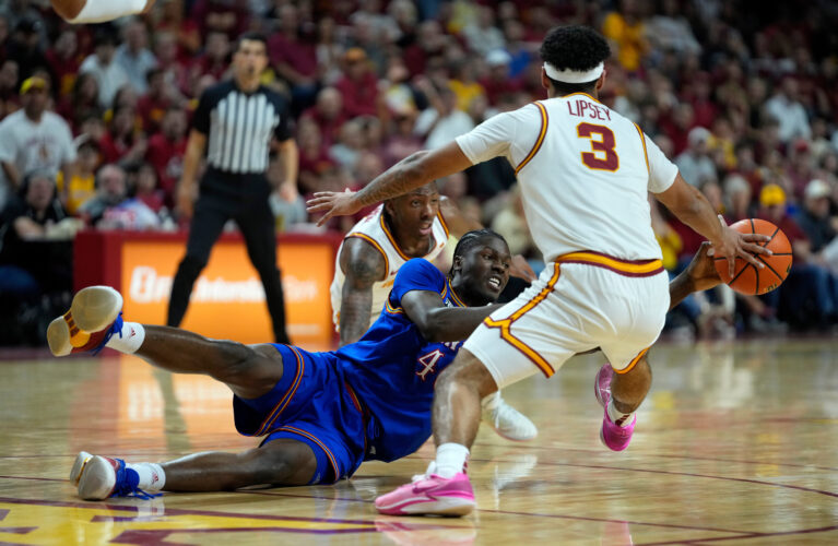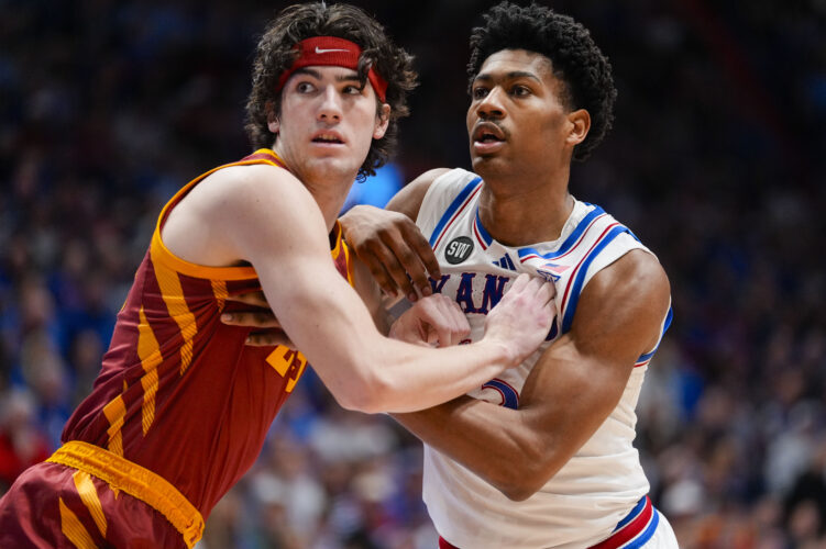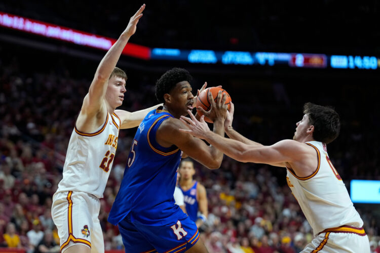 AMES, Iowa — A day on which both No. 9 Kansas and No. 5 Iowa State were wearing throwback uniforms seemed like an appropriate occasion for an old-fashioned rock fight. The Jayhawks and Cyclones delivered that style of play for about 13 minutes on Saturday afternoon at Hilton Coliseum — ...
